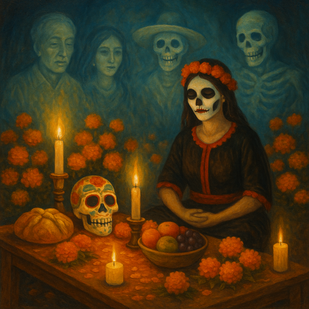 Families create altars (ofrendas) with food, candles, and marigolds to welcome spirits of loved ones back to the human world.
