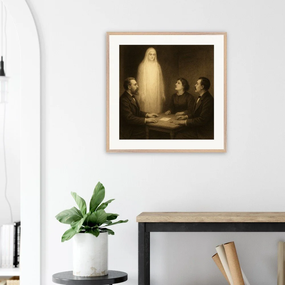 Discover our exclusive collection of Victorian-inspired séance art, perfect for creating an atmosphere of mystery and reflection in your home, studio, or spiritual space. Each canvas and print captures the luminous world of Spiritualism, mediumship, and spirit manifestation — blending historical authenticity with modern artistic expression.